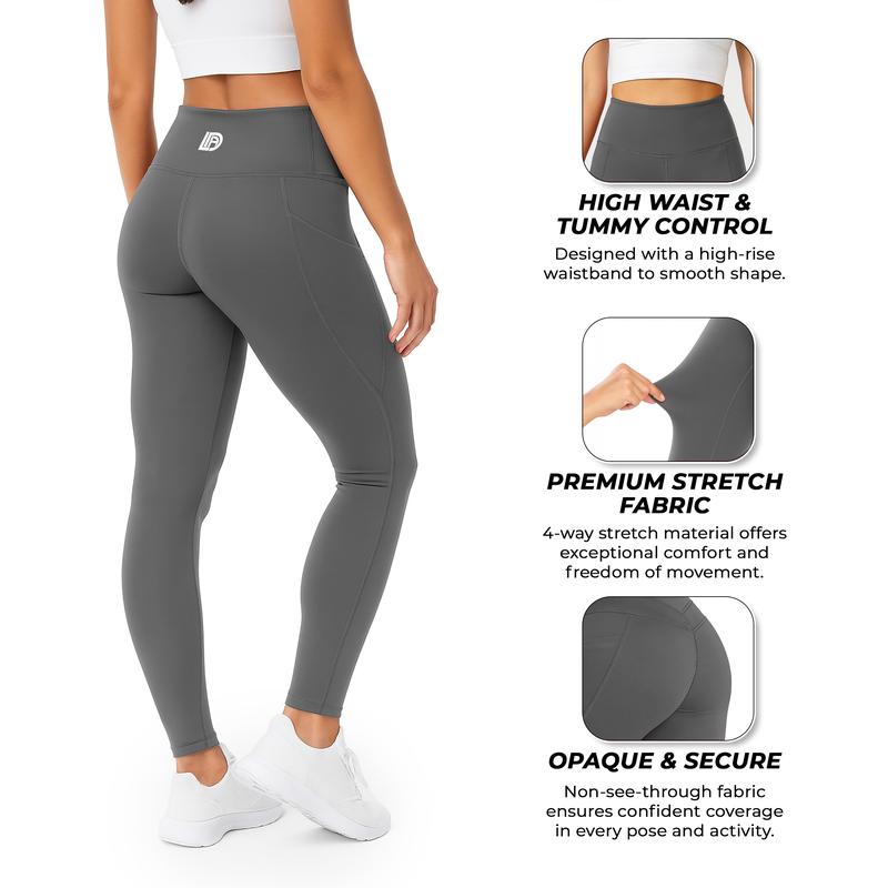Butt-Lifting Effect & Tummy Control Waistband: The high-rise design cinches the waist and accentuates your curves. Flexible 4-Way Stretch Fabric: Perfect for yoga, running, gym, or lounging. Side Pockets (12cm x 10cm): Practical and deep enough to hold your phone, cards, or small accessories.